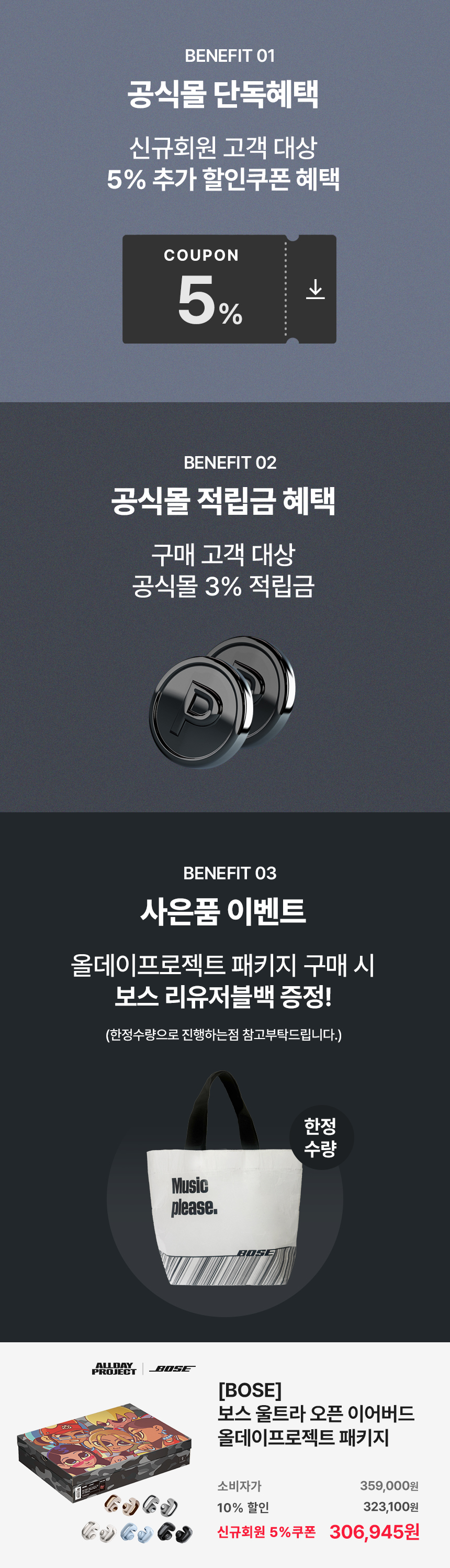 보스 공식몰 올데이프로젝트 패키지 특별 혜택